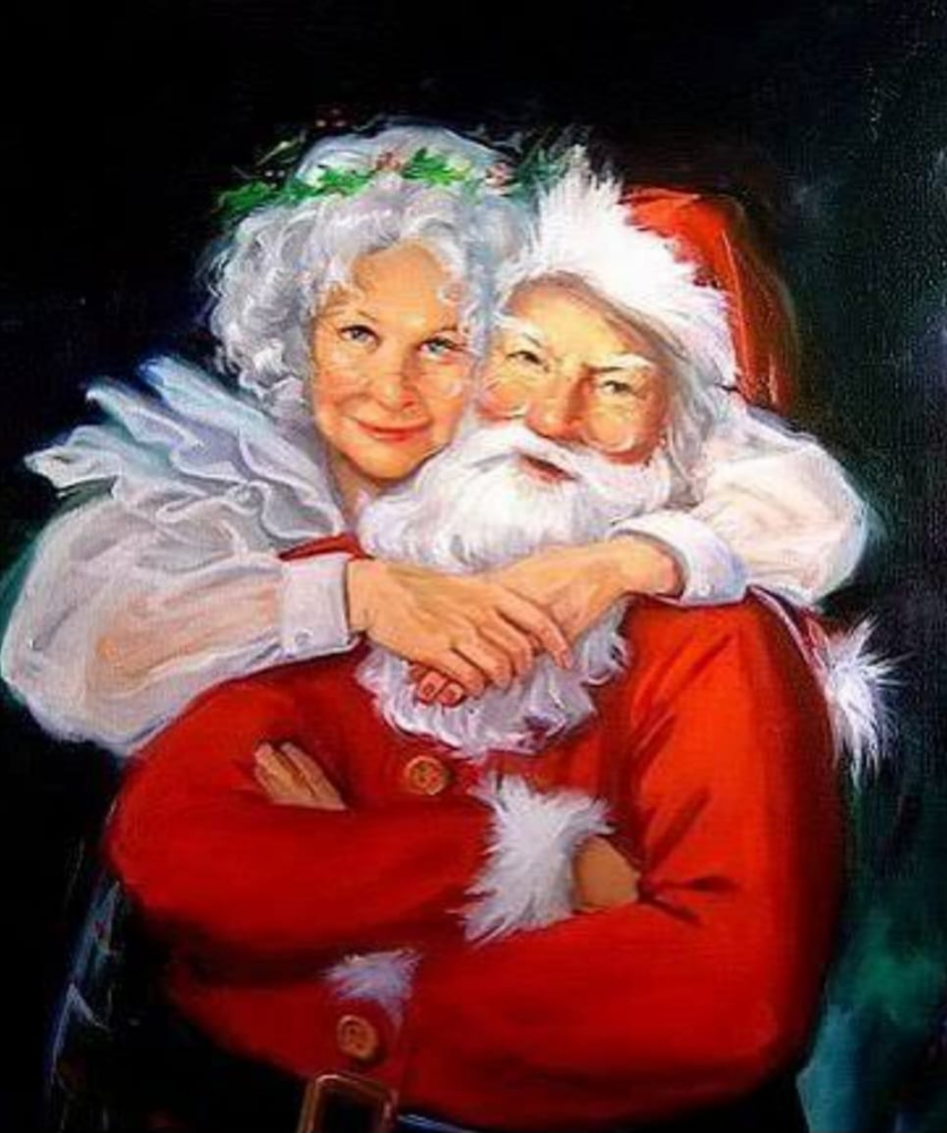 Pendant ce temps, le Père Noël et la Mère Noël, tout souriants, disaient au